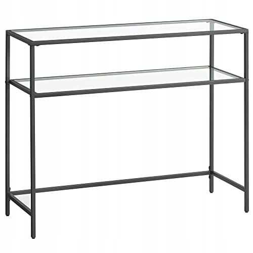Konsola wykonana ze szkła i stali malowanej proszkowo na kolor czarny. Produkt tworzy niesamowitą dekorację Twojego pomieszczenia. Półki konsoli są stabilne, a więc możemy umieścić na nich książki, kwiaty w wazonach, ozdobne figurki, dziecięce zabawki oraz ramki ze zdjęciami. Odpowiednie wymiary konsoli zapewniają wystarczająco dużo miejsca na nasze rzeczy. Nowoczesny a zarazem prosty wygląd, te cechy na pewno skłonią Cię do wyboru tego mebla. Mebel cechuje się uniwersalnością oraz funkcjonalnością, będzie świetnie pasował do salonu, sypialni, przedpokoju, domowego gabinetu. Konsola na pewno wpasuje się w wystrój niejednego pomieszczenia. Stalowa konstrukcja zapewnia stabilność mebla. Idealnie spasowane elementy ramy oraz szklane półki nadadzą Twojemu wnętrzu wdzięku. Zadbaj o estetykę swojego przedpokoju, salonu, pokoju dziennego czy sypialni wybierając produkty sprawdzone, o najwyższej jakości wykonania.