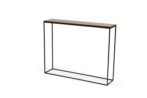Jedną z najważniejszych cech stylu skandynawskiego je zachowanie równowagi. Kolejną jest połączenie z naturą widoczne w materiałach wykorzystywanych do produkcji mebli. Naturalny dębowy blat i stelaż w postaci ramy łączą te dwie cechy w genialny sposób. WYMIARY: Wysokość: 78 cm Głębokość: 22 cm Szerokość: 100cm MATERIAŁ: Metal, malowany proszkowo. Blat z naturalnym fornirem dębowym. Waga: 9,5,