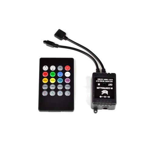 Kontroler podłączony do listwy RGB pozwoli nam na jej włączanie i wyłączanie, zmienianie kolorów świecenia listwy, za pomocą tego kontrolera można ustawić 8 różnych kolorów świecenia oraz 4 tryby (programy) zmiany kolorów tam by znaleźć w zależności od nastroju kolor przy którym będziemy się czuli najlepiej, możliwa jest również zmiana intensywności świecenia (rozjaśnianie/przyciemnianie)