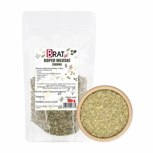 Opakowanie zawiera 100 g ziaren kopru włoskiego.
