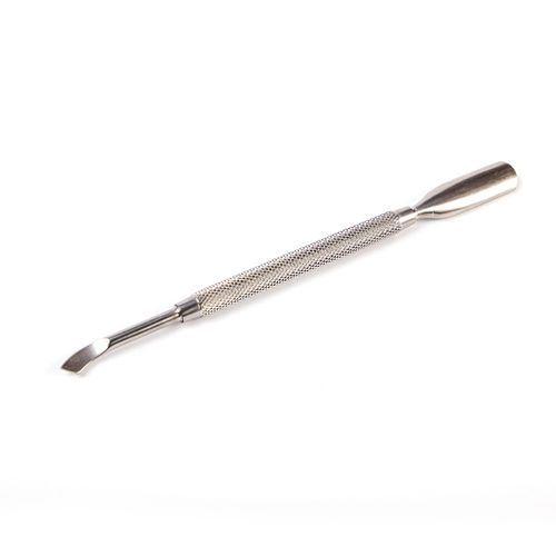 | Dwustronne kopytko – radełko przeznaczone do usuwania zalegającego na płytce naskórka lub usuwania lakierów hybrydowych z płytki paznokcia. Posiada dwa ostre zakończenia. Wyprofilowana i karbowana struktura rękojeści zapewnia komfort i precyzję pracy. Kopytko wykonane ze stali nierdzewnej, może być sterylizowane w autoklawie. | |