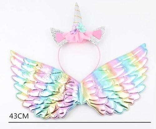 W zestawie znajdziesz opaskę z uszami i charakterystycznym rogiem, ale również tęczowe skrzydła - Twoje dziecko będzie mogło się przebrać za dobrze znane każdemu magiczne zwierzę!