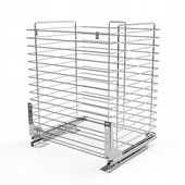 Ten nowoczesny kosz na bieliznę typu Cargo model do płytkiej szafki 40 cm w srebrnym wykończeniu wyróżnia się precyzyjnym wykonaniem i ergonomicznym designem, który idealnie wpasowuje się w przestrzeń. Pełny wysuw na prowadnicach zapewnia łatwy dostęp do zawartości, eliminując bałagan i oszczędzając czas na codzienne porządki.