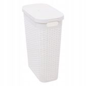 Ten wysokiej jakości kosz na pranie o pojemności 40 litrów, wykonany z syntetycznego rattanu w kolorze białym, wyróżnia się smukłą konstrukcją, która idealnie wpasowuje się w wąskie przestrzenie. Drobne perforacje zapewniają doskonałą cyrkulację powietrza, co gwarantuje świeżość bielizny i brak nieprzyjemnych zapachów, nawet w warunkach wysokiej wilgotności.