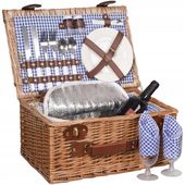Dzięki zestawowi sztućców, talerzyków, kieliszków oraz scyzorykowi z otwieraczem i korkociągiem, ten kosz piknikowy zapewnia wszystko, czego potrzebujesz na udaną wyprawę. Bez zbędnych zakupów, wystarczy zabrać ulubione przekąski i napoje.