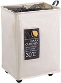 Kosz pojemnik wózek na pranie składany na kółkach materiałowy beżowy