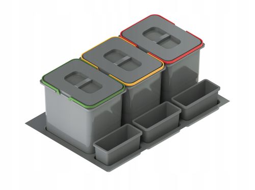 W zestawie znajdują się nie tylko pojemniki, ale także podstawka oraz dodatkowe małe pojemniki (brytfanki) o pojemności 15 l, co znacząco ułatwia systematyczne segregowanie odpadów. Możliwość docięcia podstawy w warunkach domowych pozwala na dostosowanie produktu do indywidualnych potrzeb oraz wymagań użytkownika.