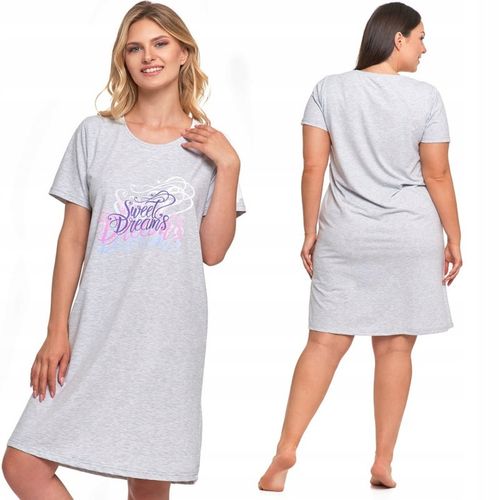 Koszula nocna łączy w sobie modny design z funkcjonalnością. Uroczy nadruk z przodu z napisem "Sweet Dreams" nadaje jej wyjątkowego charakteru, sprawiając, że poczujesz się kobieco i stylowo nawet w sypialni. Jednocześnie luźny krój i krótkie rękawy gwarantują pełną swobodę ruchów podczas snu.