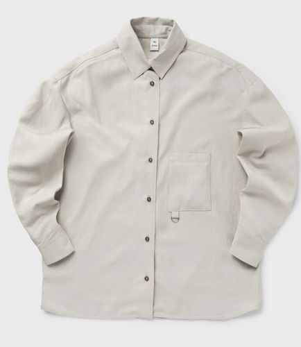 Simone marki Won Hundred to obszerna koszula z głęboko umieszczoną kieszenią na piersi, ozdobioną metalowym kółkiem w kształcie litery D. Koszula wykonana jest z mieszanki wiskozy Ecovero, o lekko strukturalnej powierzchni.