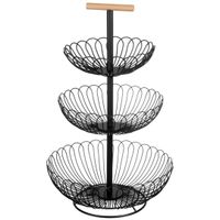 Koszyk piętrowy patera na owoce wykonany z metalu w kolorze czarnym. Może posłużyć do przechowywania owoców, warzyw lub przekąsek. Można w nim także serwować pieczywo. Koszyk fantastycznie prezentuje się zarówno na kuchennym blacie jak i na eleganckim stole. Idealnie komponuje się z wnętrzami urządzonymi w stylu nowoczesnym.
