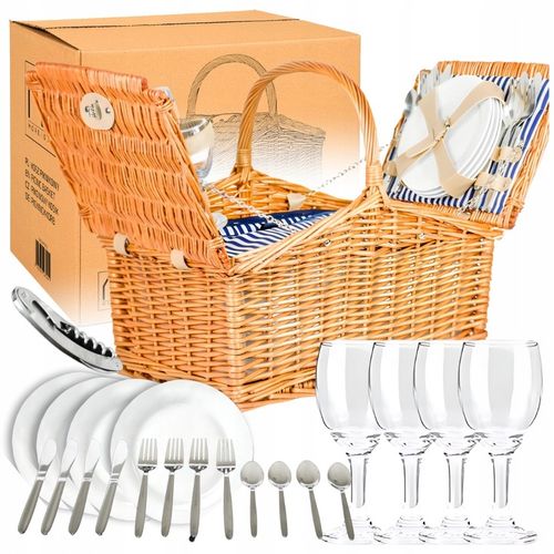 Ten wyjątkowy wiklinowy kosz piknikowy dla 4 osób to kwintesencja jakości i stylu. Starannie wykonany z naturalnych materiałów, zapewni Ci niezapomniane chwile podczas rodzinnych wypadów lub romantycznych pikników w otoczeniu przyrody.
