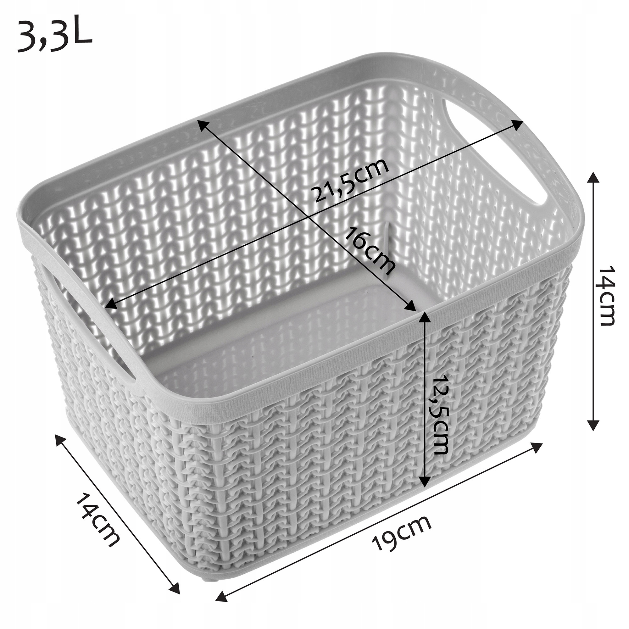 Przedstawiamy praktyczny i niezwykle stylowy koszyk prostokątny, który z pewnością odmieni Twoje wnętrza! Jego wszechstronność i estetyka sprawiają, że doskonale nadaje się do każdego pomieszczenia w Twoim domu - od salonu, przez kuchnię, aż po sypialnię. Jego pojemność 3,3L (wymiary: 21,5 x 16 x 14 cm) pozwala na pomieszczenie wielu drobiazgów, takich jak gazety, książki, zabawki czy ręczniki.