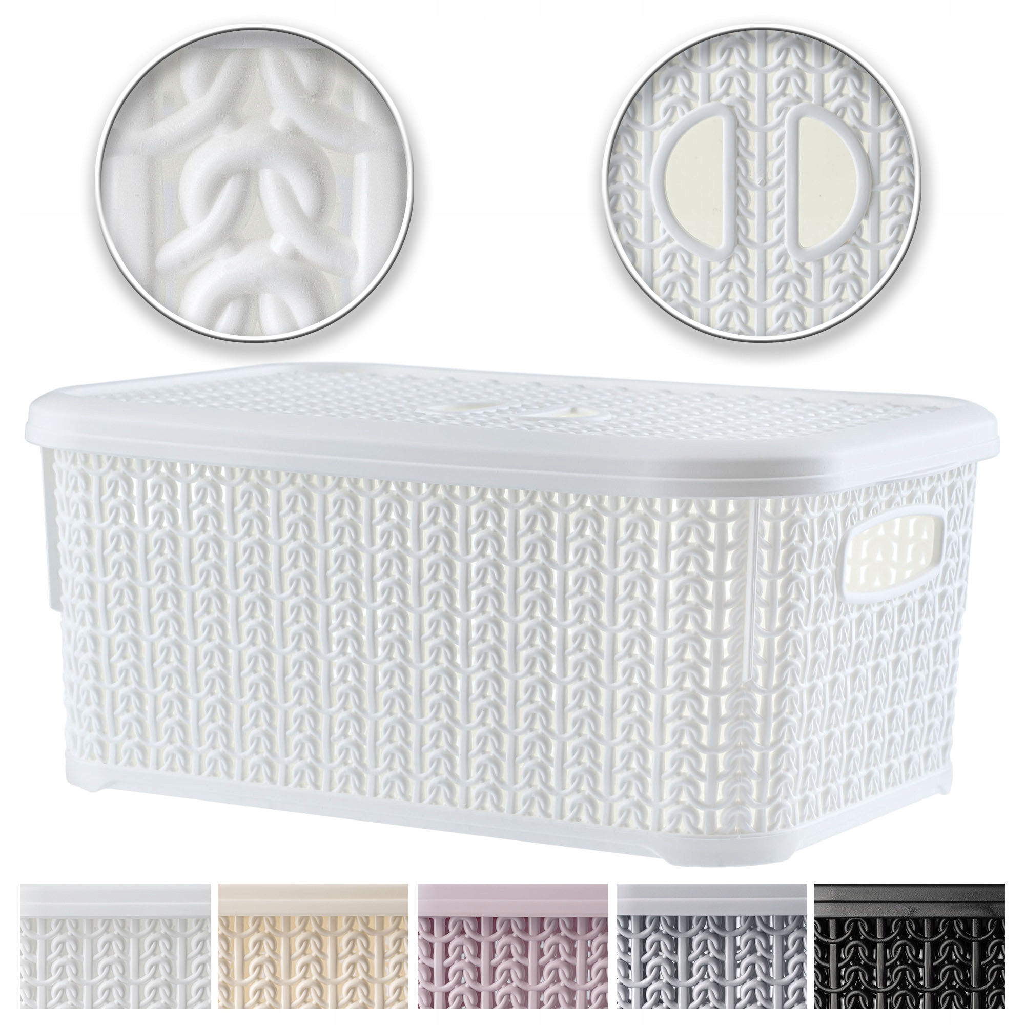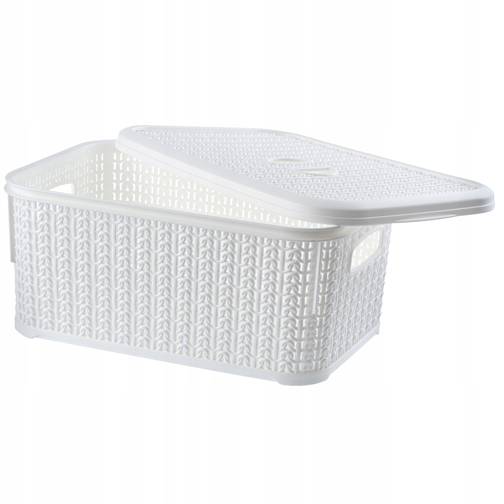 Użyteczny koszyk prostokątny z pokrywką, który sprawdza się w każdym pomieszczeniu jako atrakcyjne uzupełnienie stylowego wnętrza oraz przydatny pojemnik do przechowywania drobiazgów.