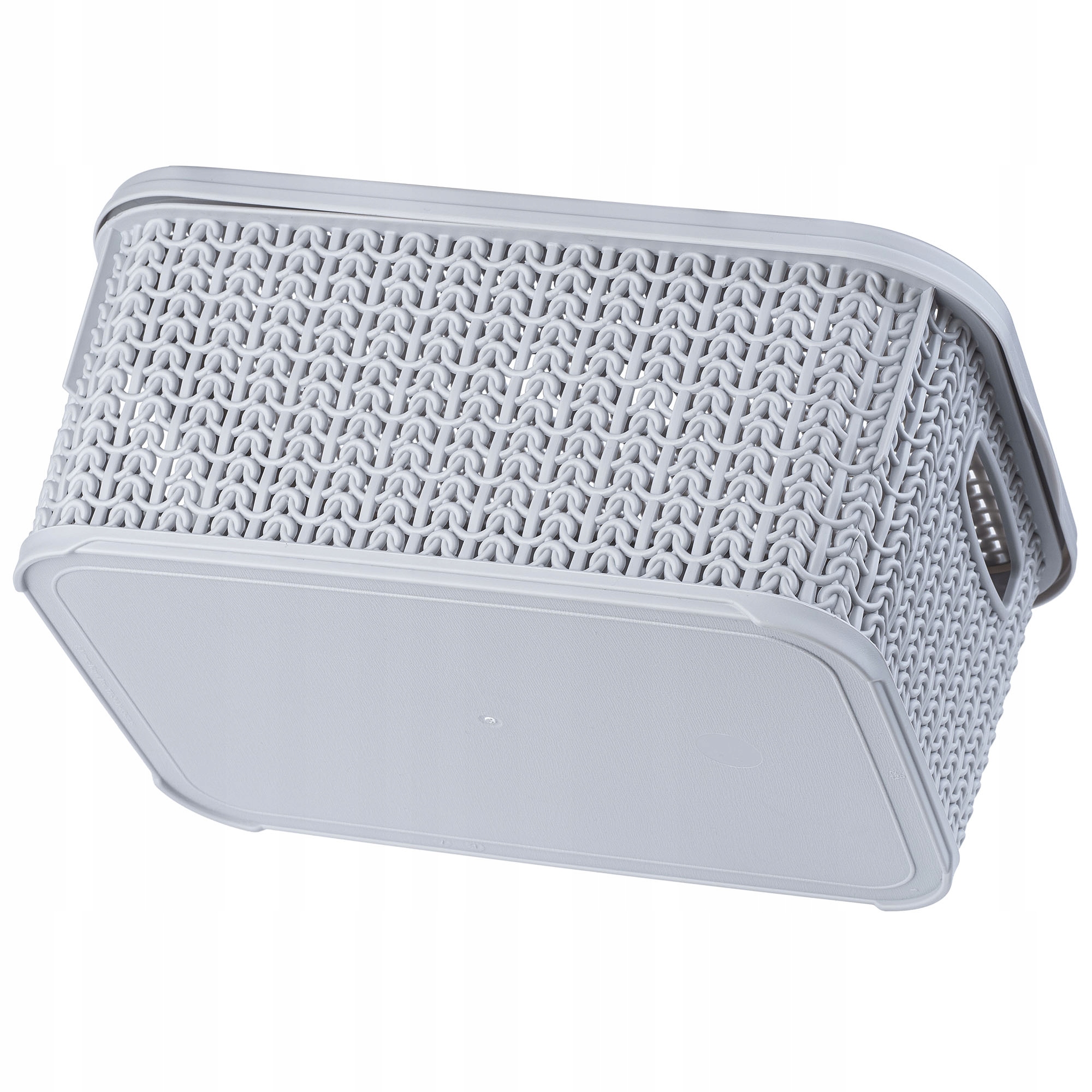 Użyteczny koszyk prostokątny z pokrywką, który sprawdza się w każdym pomieszczeniu jako atrakcyjne uzupełnienie stylowego wnętrza oraz przydatny pojemnik do przechowywania drobiazgów.