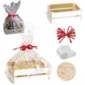 Ten wysokiej jakości zestaw prezentowy w formie drewnianej skrzynki o wymiarach 31x21x11cm zachwyca nie tylko eleganckim, trwałym wykonaniem z białej płyty HDF, ale także praktycznymi elementami, które ułatwiają samodzielne zapakowanie. Wypełnienie z wełny drzewnej, arkusz celofanu 100x140cm oraz czerwona kokardka tworzą harmonijną całość, zapewniając profesjonalny i estetyczny efekt bez zbędnego wysiłku.