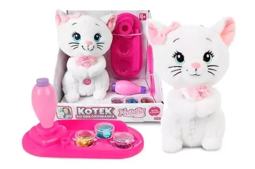 Możliwość mocowania cekinów na włosach dzieci i kotka, w zestawie: kot, podstawka, 3 pojemniczki z cekinami, urządzenie do zakładania cekinów, grzebień, funkcje: po naciśnięciu na brzuszek miałczy, wym. Opk: 24 x 24 x 16 cm., Baterie: 3 x ag zał. Demonstracyjne, 3+