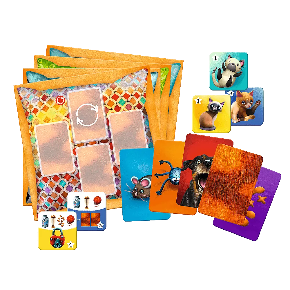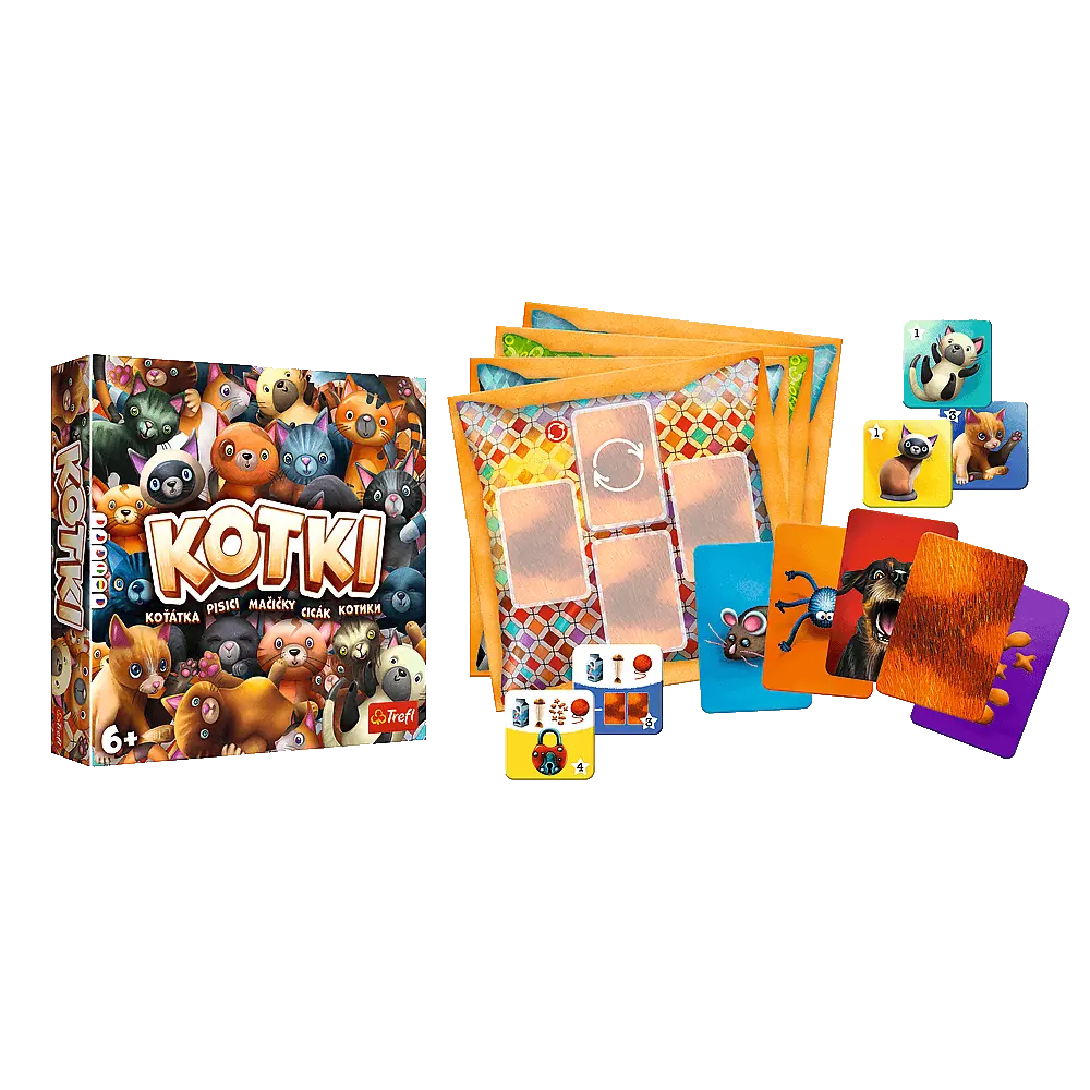 Zdobądź sympatię najfajniejszych kotów w okolicy. Zwabiaj je kocimi przysmakami i zabawkami, by podeszły właśnie do Ciebie. Zdobądź tytuł Największego Miłośnika Kotów! Uważaj jednak na biegającego po okolicy psa – jego szczekanie wystraszy nawet najodważniejszego kotka. Zawartość opakowania: • 4 plansze, • 32 kafelki kotów, • 52 karty z przynętami, • instrukcja.