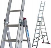 ✔️Wielofunkcyjna konstrukcja z trzema elementami, umożliwiająca ustawienie jako drabina przystawna, rozsuwana, wolnostojąca lub rozstawna, co zapewnia elastyczność w pracach na różnych wysokościach.