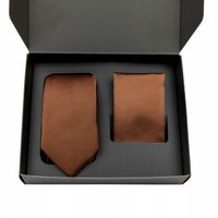 ✔️ Spójny brązowy kolor krawata i poszetki 22 cm x 22 cm, idealnie układającej się w kieszonce garnituru dla subtelnego, eleganckiego efektu.