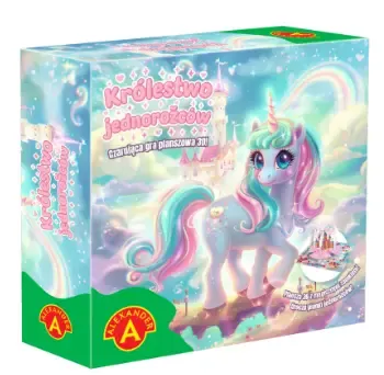 „Królestwo Jednorożców” to gra planszowa, która przenosi dzieci do świata cudownego zamku w chmurach. Każdy gracz wciela się w jednorożca i wyrusza na niezwykłą przygodę, aby odnaleźć pięć czarodziejskich przedmiotów – od podkowy szczęścia po magiczną różdżkę.