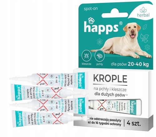 Te profesjonalne krople HAPPS zapewniają skuteczną ochronę przed pchłami i kleszczami przez okres do 16 tygodni dzięki zastosowaniu 4 tubek w zestawie. Każda aplikacja chroni Twojego psa przez pełne 4 tygodnie, co oznacza nieprzerwane bezpieczeństwo i komfort dla Twojego ukochanego czworonoga bez częstego powtarzania zabiegu.