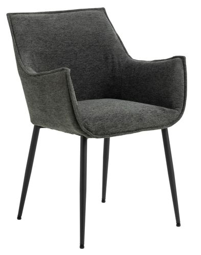 Krzesło Bonita to doskonałe połączenie nowoczesnego stylu i wygody, idealne zarówno do jadalni, jak i salonu. Wyposażone w podłokietniki, tapicerowane ciemnoszarą tkaniną Apia z przędzą szenilową, oferuje elegancję i trwałość. Francuskie przeszycia oraz spiczaste końce nadają meblowi wyjątkowego uroku, który z łatwością wkomponuje się w różnorodne aranżacje wnętrz. Dzięki matowej, czarnej podstawie z malowanej proszkowo stali, krzesło zyskuje minimalistyczny, nowoczesny charakter, co czyni je idealnym wyborem na duże i małe okazje.