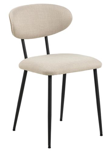 Krzesło do jadalni Denise to atrakcyjne wizualnie rozwiązanie, które idealnie pasuje do każdej nowoczesnej jadalni. Tapicerowane jest strukturalną tkaniną w pięknym beżowym kolorze, która posiada dwukolorowy efekt, dodając mu unikalnego charakteru. Smukłe metalowe nogi malowane proszkowo na czarno stanowią interesujący kontrastowy element, który podkreśla elegancję krzesła.