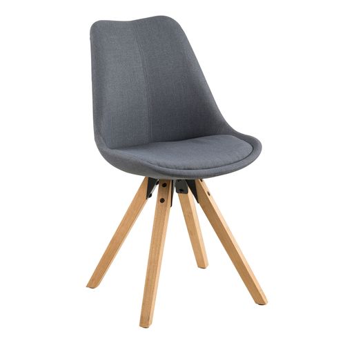 Podstawa krzesła Dima wykonana została natomiast z olejowanego drewna kauczukowego. Jego powierzchnia pokryta jest bejcą w kolorze dębu, co podkreśla naturalny wygląd drewna, a jednocześnie zabezpiecza podstawę przed zniszczeniami. Cztery grube drewniane nogi ustawione pod kątem zapewniają bezpieczeństwo i stabilność. Krzesło wymaga montażu podstawy do siedziska za pomocą śrub.