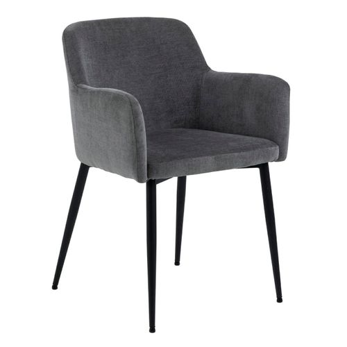 Uniwersalne krzesła do wnętrz o różnej stylizacji muszą być proste, a zarazem wygodne. Są to główne cechy Krzesła Karen, które jest idealnym meblem do jadali, salonu, bądź sali konferencyjnej. Uwagę zwraca kubełkowa forma oparcia połączonego z podłokietnikami i siedziskiem. Wypełnienie krzesła stanowi pianka poliuretanowa, która jest bardzo sprężysta i odporna na odkształcenia. Jej powierzchnia tapicerowana jest efektowną tkaniną Danny fabric dark grey 18 o welwetowym wykończeniu. Nogi krzesła wykonane zostały z metalu malowanego proszkowo na czarno. Aby uniknąć zarysowania podłogi, nóżki od spodu zabezpieczone zostały specjalnymi nakładkami. Krzesło tapicerowane Karen to opcja dla tych, którzy szukają uniwersalnych rozwiązań w dobrym guście. Będzie świetnym krzesłem do wnętrz w każdym stylu.