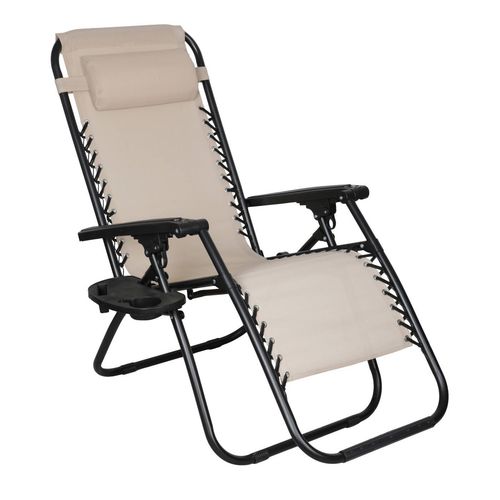 LEŻAK FOTEL OGRODOWY SKŁADANY Beżowy z Tacką