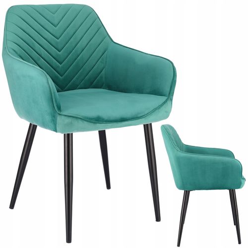 ➡️ Solidne, welurowe krzesło wyposażone zostało w miękkie siedzisko oraz wysokie oparcie z ozdobnymi pikowaniami we wzór jodełki. Całość wygląda lekko za sprawą smukłych czarnych nóżek, które nadają wizualnej lekkości, a zarazem zapewniają idealną stabilność.