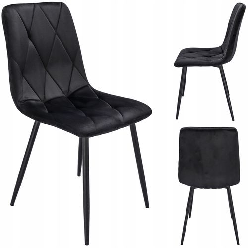 ➡️ Krzesło tapicerowane jest welurem, a po wewnętrznej stronie pikowane regularnymi przeszyciami w romby. Wysokie i smukłe nóżki w czarnym kolorze wyglądają bardzo szykownie oraz gwarantują idealną stabilność.