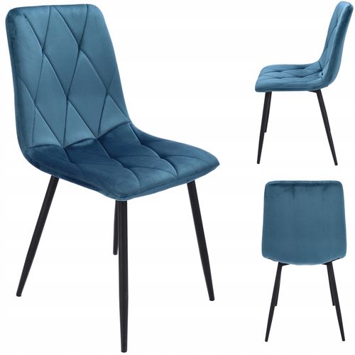 ➡️ Krzesło tapicerowane jest welurem, a po wewnętrznej stronie pikowane regularnymi przeszyciami w romby. Wysokie i smukłe nóżki w czarnym kolorze wyglądają bardzo szykownie oraz gwarantują idealną stabilność.