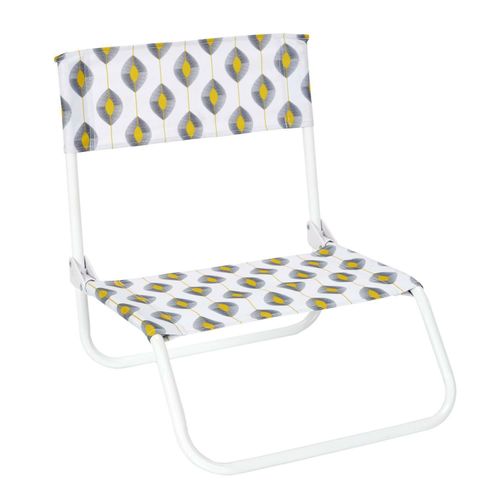 Krzesło plażowe składane to przydatny dodatek, który umili czas spędzany na plaży lub łonie natury. Krzesło sprawdzi się podczas odpoczynku w ogrodzie lub na wyjeździe na ryby. Małe, poręczne krzesło pozwoli na wygodny relaks. Metalowa konstrukcja oraz siedzisko i oparcie z tkaniny to połączenie, które sprawdza się od lat w produkcji mebli zewnętrznych. Krzesło posiada przyjemny dla oka wzór, który występuje w czterech wariantach.