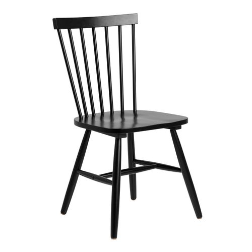 Krzesło Riano w kolorze czarnym to drewniana klasyka w najlepszym wydaniu. Szerokie oparcie z charakterystycznymi szczebelkami przechodzi w proste siedzisko i smukłe nogi złączone wspornikami. Wykonane z wytrzymałego drewna kauczukowego klasyczne krzesło będzie doskonałym wyborem do jadalni w stylu skandynawskim, salonu w stylu retro czy rustykalnej restauracji. Głębokie siedzisko i zaokrąglone oparcie dają gwarancję wygody, a solidna konstrukcja sprawia, że krzesło drewniane Riano będzie inwestycją na lata. Zgrabna budowa krzesła „patyczak” (wymiary: 48 cm x 86 cm x 48, 5 cm) pozwala na dopasowanie go nawet do niedużej przestrzeni.