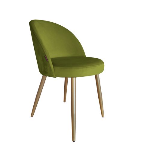 Odkryj krzesło TRIX z nogami w kolorze złotym – połączenie nowoczesności, elegancji i komfortu, które doskonale dopełni każde wnętrze. To tapicerowane krzesło, dostępne w odcieniu zielonej oliwki, to idealny wybór dla osób poszukujących stylowych i praktycznych rozwiązań do salonu, jadalni czy lokalu gastronomicznego.