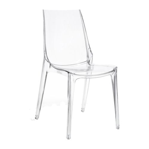 Krzesło Vanity to kolejna odsłona niezwykle modnych transparentnych siedzisk. To definicja współczesnego stylu modern glamour, który na stałe zagościł w europejskich jadalniach i sypialniach. Jeśli poszukujesz oryginalnego krzesła do stołu lub funkcjonalnego siedziska do toaletki, Vanity jest propozycją właśnie dla Ciebie! Wykonane z poliwęglanu, w dwóch wersjach, bez lub z podłokietnikami gwarantuje łatwość w czyszczeniu i wytrzymałość. Materiał, z którego wykonano siedzisko, umożliwia użytkowanie również na zewnątrz, dzięki czemu Vanity może stać się oryginalnym krzesłem na balkon lub do ogrodu. Możliwość sztaplowania aż do 8 sztuk na sobie sprawdzi się szczególnie we wnętrzach komercyjnych takich jak restauracja lub hotel.