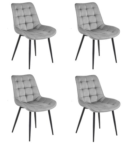 KRZESŁA TAPICEROWANE WELUROWE BERA SREBRNO SZARY NOGI CZARNE