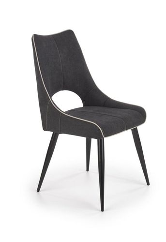 Oparcie krzesła wykonane jest z wysokiej jakości tkaniny, która nie tylko prezentuje się stylowo, ale także gwarantuje wygodę podczas długotrwałego użytkowania. Kolor krzesła, ciemny popielaty, nadaje mu subtelny, lecz wyrafinowany charakter, doskonale wpasowując się w różnorodne aranżacje pomieszczeń.
