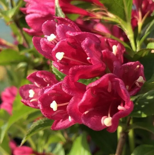 Krzewuszka Big Love to nowoczesna i niezwykle efektowna odmiana krzewuszki, która zachwyca nie tylko obfitym i długim kwitnieniem, ale także wyjątkowym ulistnieniem. Jej dzwonkowate, duże kwiaty w intensywnym, purpurowo-różowym kolorze pojawiają się w maju i czerwcu, a często także powtarzają kwitnienie pod koniec lata.