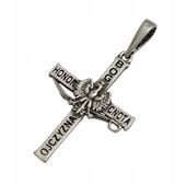 Ten oksydowany srebrny krzyżyk męski z motywem orła i grawerem pr 925 wyróżnia się precyzyjnym wykonaniem i dbałością o detale, co zapewnia mu wyjątkową trwałość i autentyczność. Oksydowana powierzchnia nadaje niepowtarzalny, głęboki połysk, a wygrawerowany motyw "Bóg, Honor, Cnota, Ojczyzna" symbolizuje niezachwiane wartości, idealnie integrując się z codziennym stylem użytkownika.