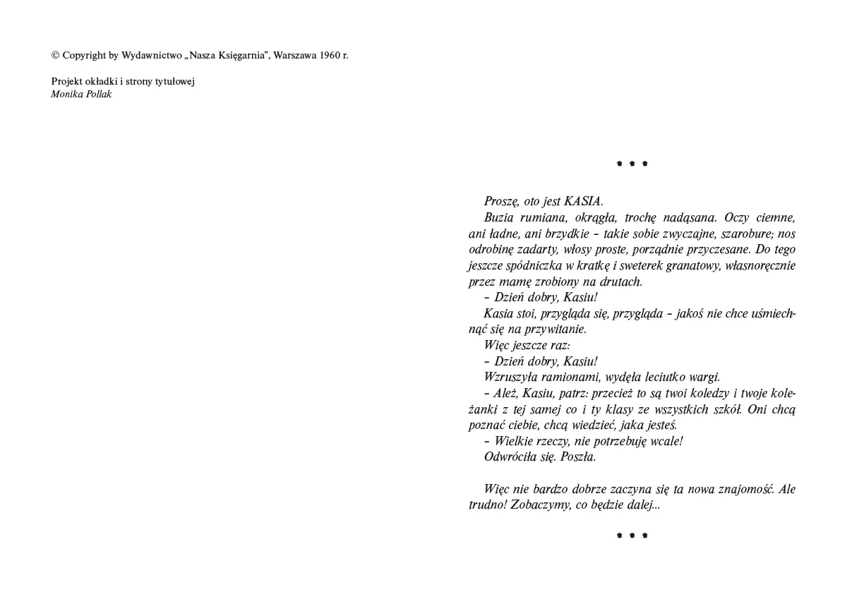 Jej bohaterką jest Kasia – dotychczas wzorowa uczennica i ulubienica rodziców i dziadków – której rodzi się siostrzyczka. Zazdrosna dziewczynka przeżywa bunt prowadzący do samozniszczenia: staje się agresywna, popada w konflikty z kolegami i z domownikami, przestaje się uczyć... I dopiero ciężka choroba siostrzyczki, do której Kasia sama się przyczyniła, pozwala jej zrozumieć, jak bardzo kocha małą, i wrócić do dawnego stylu życia.