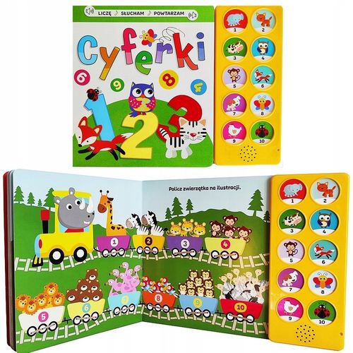Ta wyjątkowa książka sensoryczna "Cyferki" łączy w sobie edukację z zabawą, prezentując 10 autentycznych dźwięków aktywowanych przyciskami. Dzięki sympatycznym ilustracjom o żywej kolorystyce oraz krótkim wierszkom o zwierzątkach, maluch w naturalny sposób poznaje cyferki od 1 do 10, jednocześnie trenując pamięć i koncentrację.