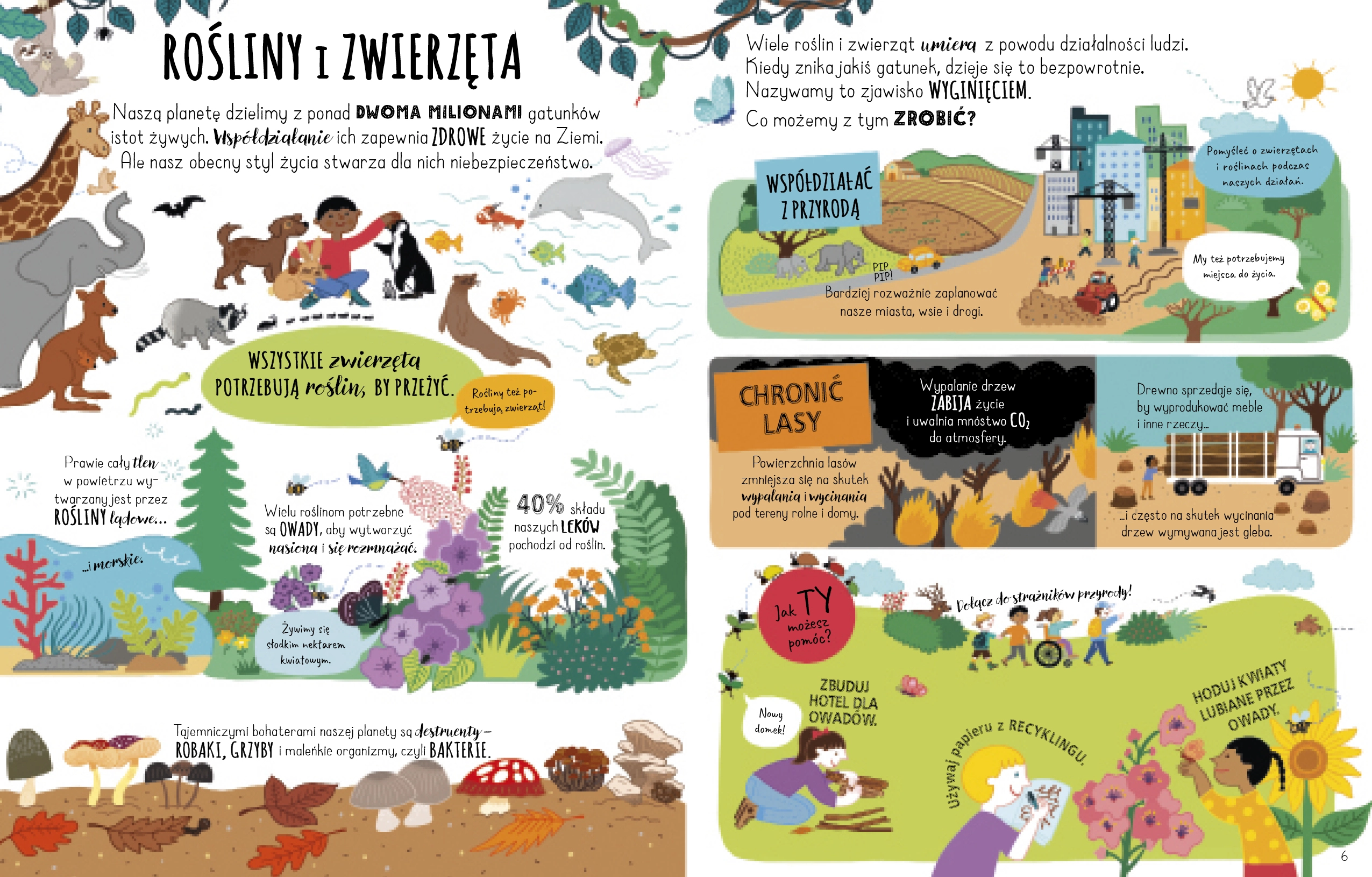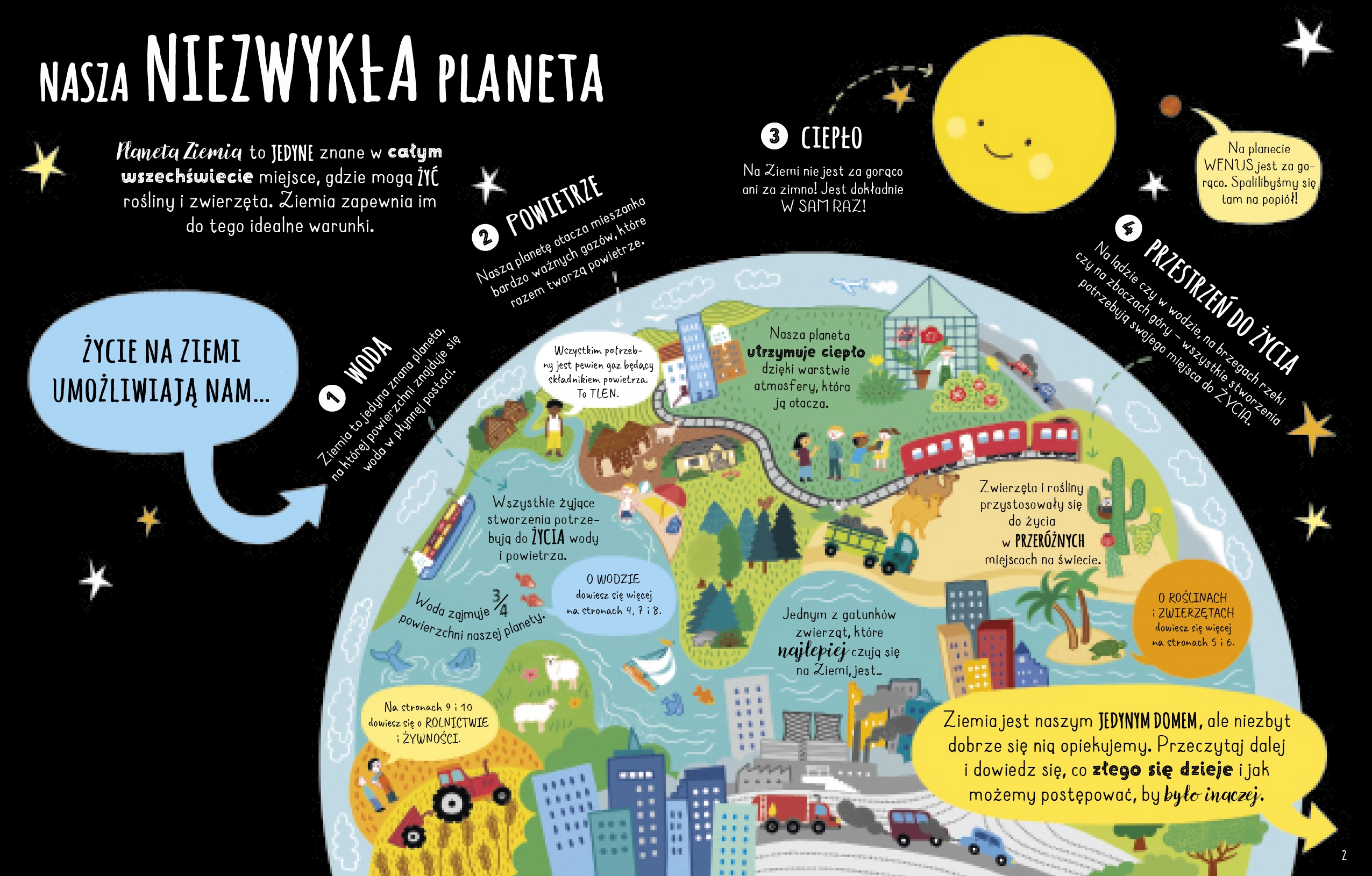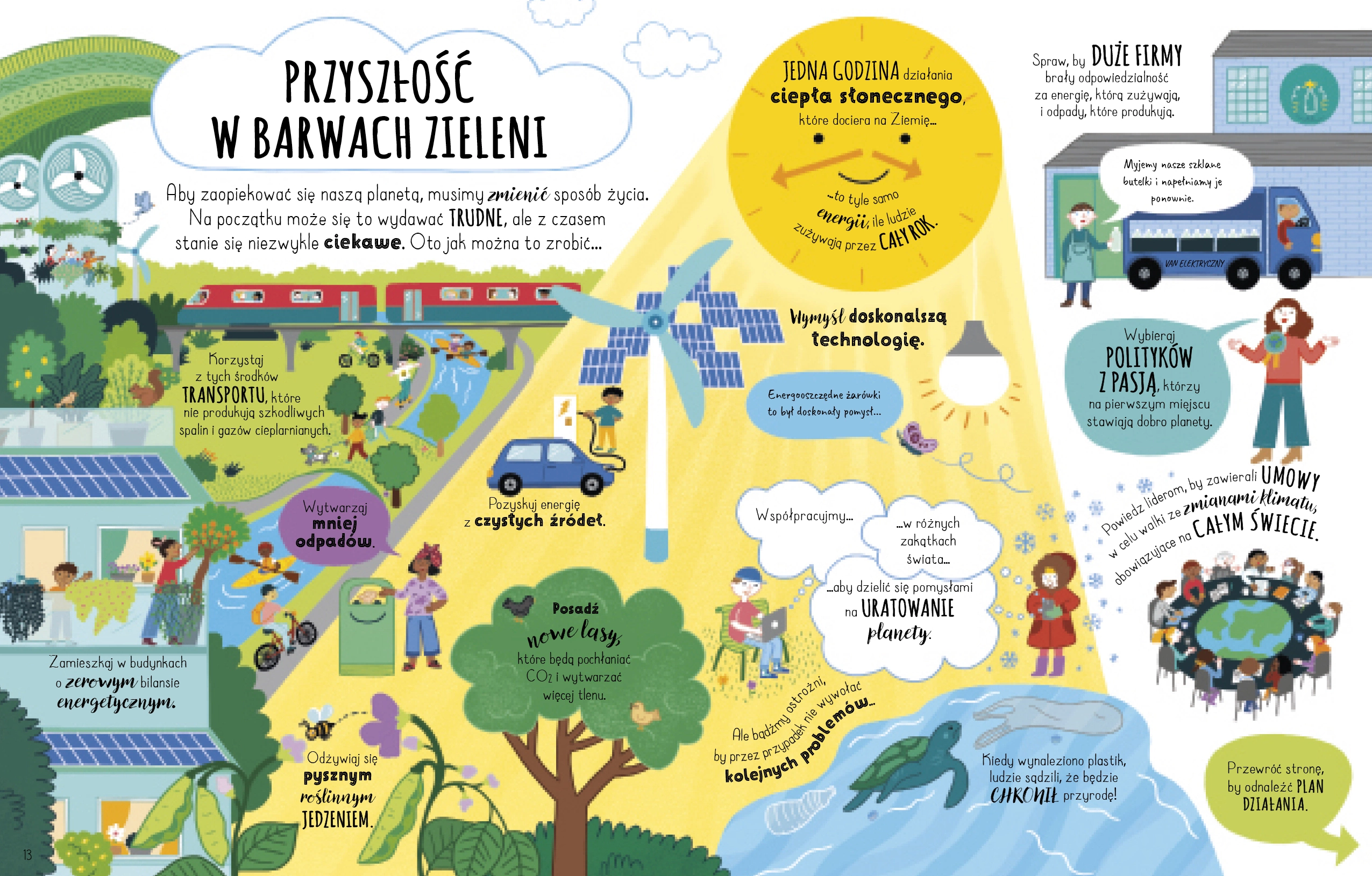 Planeta Ziemia jest jedynym domem, jaki mamy. Nie dbaliśmy o nią zbyt troskliwie. Otwieraj okienka, by dowiedzieć się, co robiliśmy źle i jak możemy pomóc naszej planecie. Ta starannie opracowana, bogato ilustrowana książka w przystępny sposób wyjaśnia, dlaczego na Ziemi mogło powstać życie i jakie zagrożenia dla planety wynikają z niewłaściwej działalności człowieka. Przybliża takie ważne tematy, jak emisja gazów cieplarnianych, ślad węglowy czy czysta energia. Mały czytelnik dowie się, dlaczego powinniśmy jeść lokalne owoce i warzywa, a nawet ile wody potrzeba do wyprodukowanie jednej bawełnianej koszulki i ile może jej oszczędzić podczas codziennego mycia zębów. Na końcu znajdzie „Plan działania”, w którym zostały zebrane pomysły pozytywnych zachowań przedstawione na poszczególnych stronach książki.