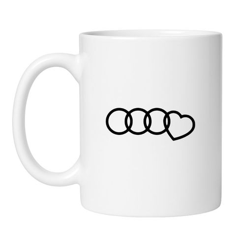 To nie jest oficjalne logo. To symbol stylu życia. Kubek dla tych, którzy kochają jazdę, ale jeszcze bardziej kochają... swoją brykę. Trzy pierścienie i jedno serce – bo tu nie chodzi o markę, tylko o emocje. Ten kubek to subtelny, ale wymowny hołd dla fanów motoryzacji i... miłości do czterech kółek.