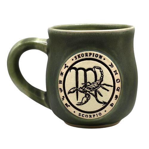 Unikalną ozdobą naczynia jest reliefowa etykieta przedstawiająca znak zodiaku Skorpion. Etykieta powstaje oddzielnie, a następnie jest aplikowana na surowy kubek jeszcze przed wypałem. Dzięki temu ozdoba trwale łączy się z powierzchnią i zachowuje pełnię szczegółów oraz elegancki wygląd przez długie lata.
