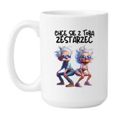To śmieszny kubek na prezent, który pokaże drugiej połówce, że wasze „razem” to plan na całe życie – nawet jeśli na starość będziecie tańczyć tak niezgrabnie, jak para z nadruku.