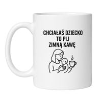 Kubek „Chciałaś dziecko, to pij zimną kawę” to idealny prezent dla świeżo upieczonej mamy, zmęczonej żony, koleżanki po porodzie albo… samej siebie. Bo matki też mają prawo się śmiać. Nawet, jeśli tylko w myślach.