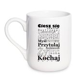 To kubek dla wrażliwców z charakterem. Dla tych, co nie muszą wrzucać selfie z jogi, żeby czuć, że żyją. Kubek z typograficznym przesłaniem o radości życia sprawdzi się u osób, które wierzą, że małe rzeczy mają wielkie znaczenie– i że warto je celebrować, chociażby z kawą w ręku.