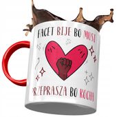 Rozpocznij dzień z uśmiechem! Szukasz prezentu, który nie tylko zapadnie w pamięć, ale również doda blasku każdemu porankowi? Przedstawiamy Kubek Czerwony Śmieszny Facet Bije Bo Musi - idealny wybór dla wyjątkowej osoby i chwil!